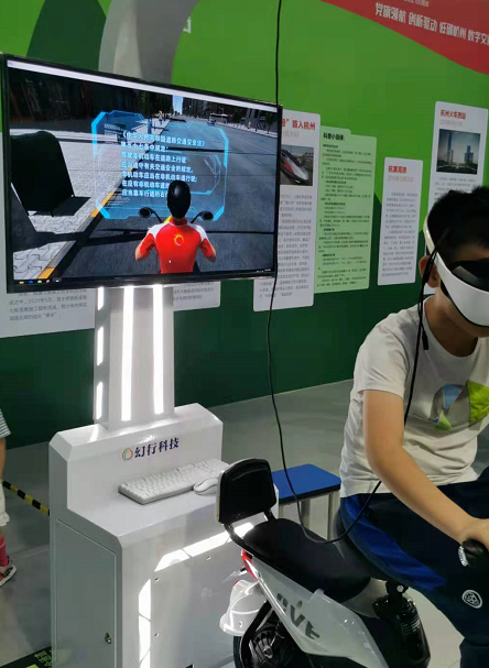 其中,人气最旺的第三展区设立了由幻行科技提供设备的VR互动体验区。该展区展出了VR电动车、VR单车等契合实际生活的VR交通设备,吸引了众多大小朋友前来排队体验,通过凸显科普性、趣味性、交互性的沉浸式交通事故现场体验,让安全铭记于每个人的心头,受到了广大家长和小朋友的好评!